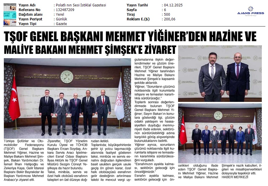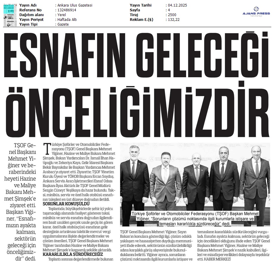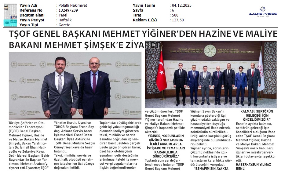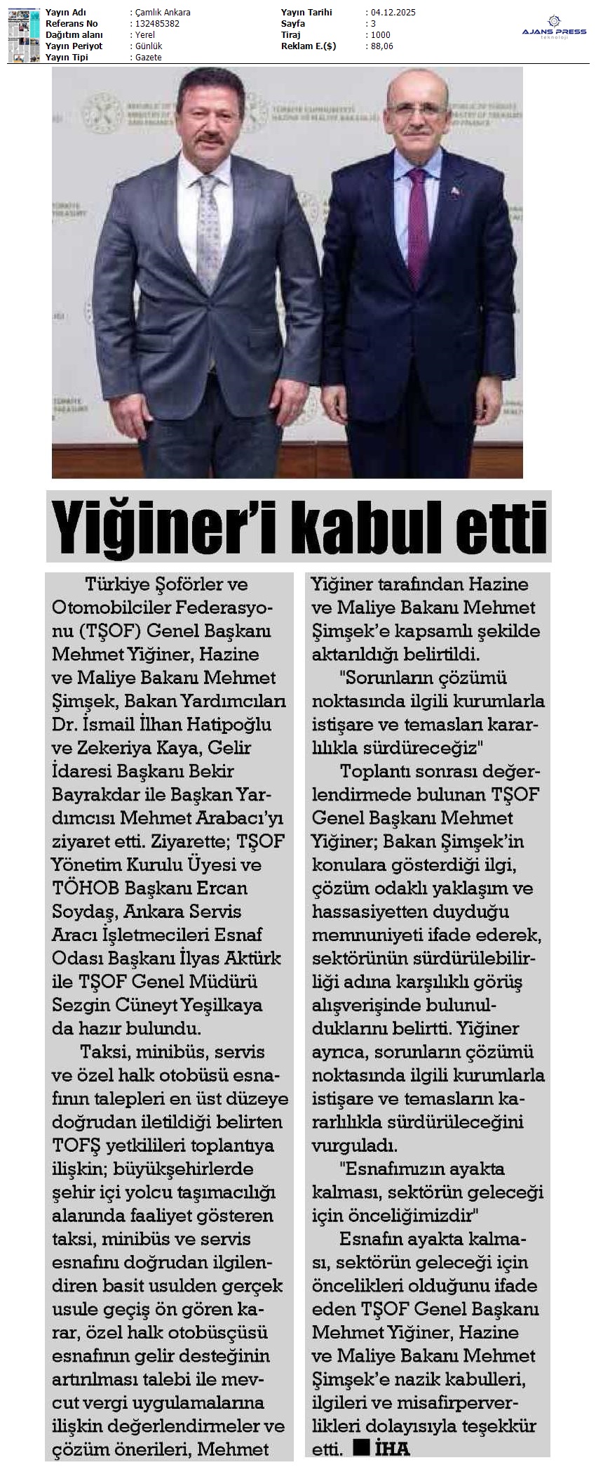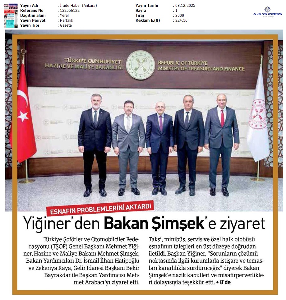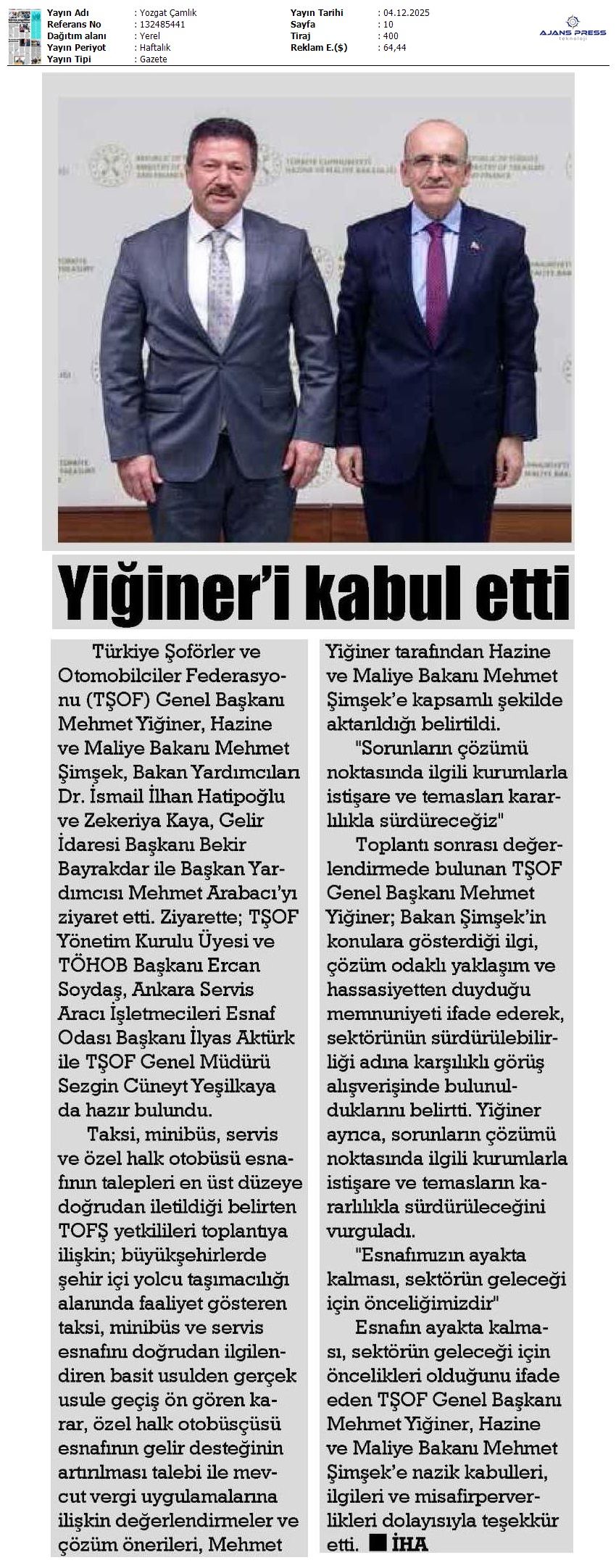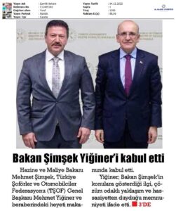 ULAŞTIRMA VE ALTYAPI BAKANLIĞI ULAŞTIRMA HİZMETLERİ DÜZENLEME GENEL MÜDÜRLÜĞÜNE, TŞOF GENEL BAŞKAN MEHMET YİĞİNER ZİYARET GERÇEKLEŞTİRDİ