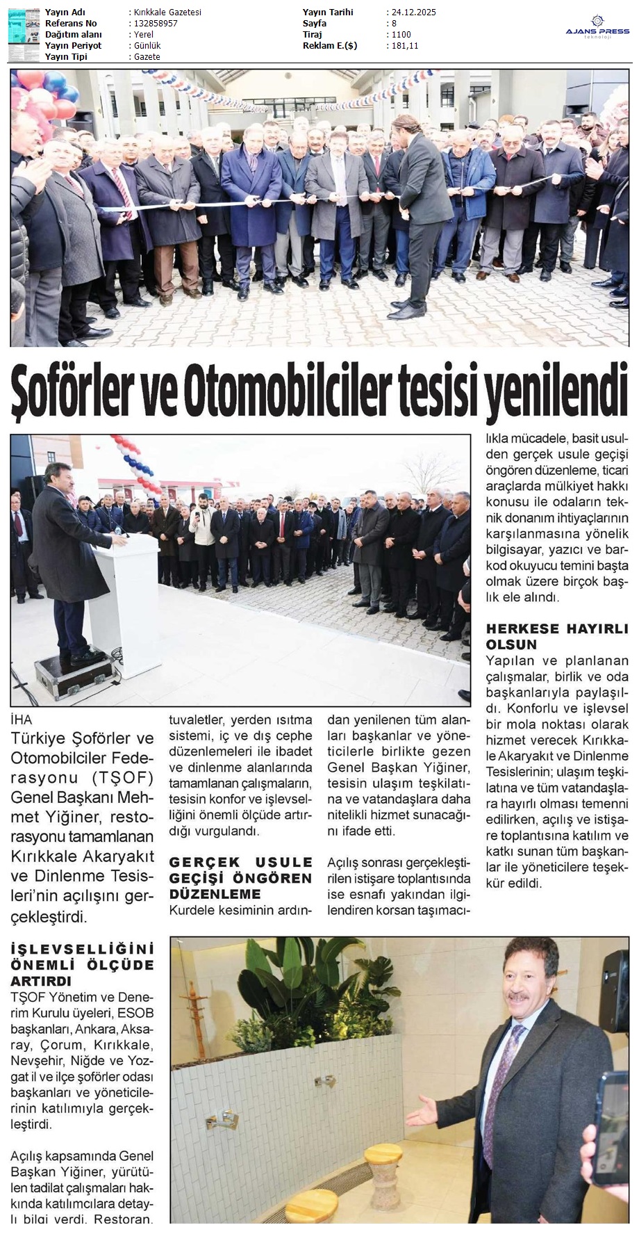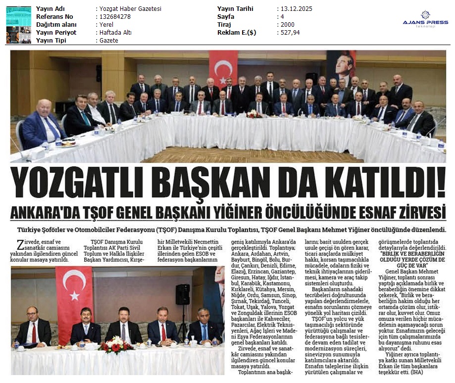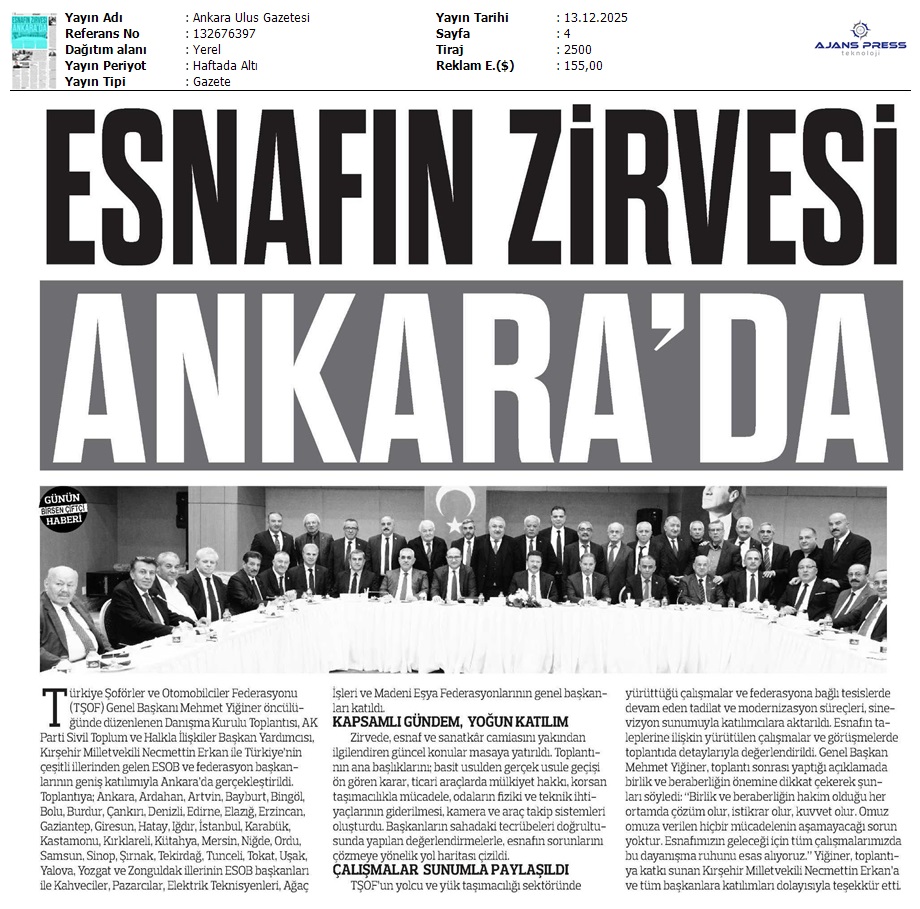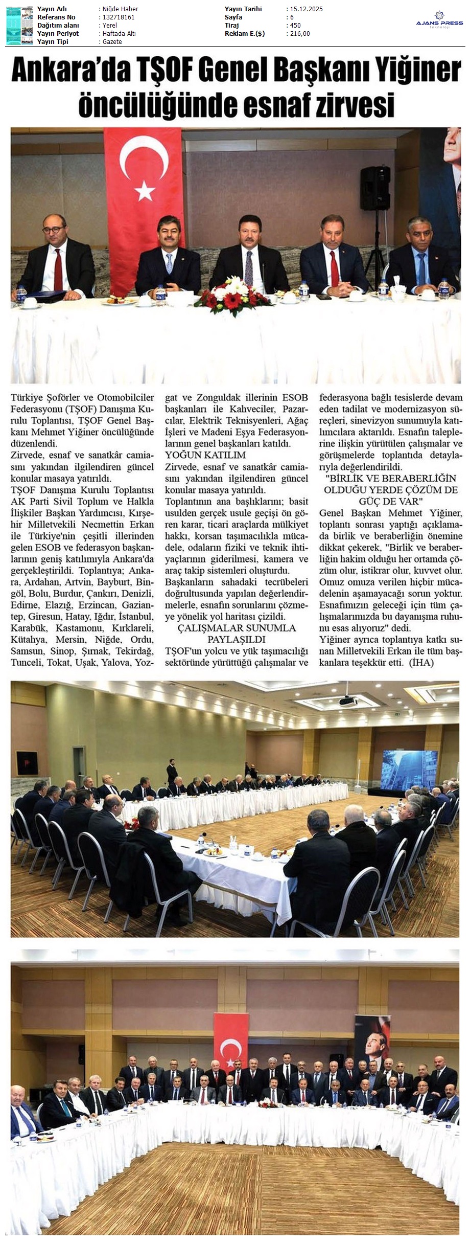 GENEL BAŞKANIMIZ SAYIN MEHMET YİĞİNER, ANKARA UMUM OTOMOBİLCİLER VE ŞOFÖRLER ESNAF ODASI’NIN 23. OLAĞAN GENEL KURUL TOPLANTISINDA, DELEGELERİN TEVECCÜHLERİYLE YENİDEN BAŞKAN SEÇİLEREK, GÜVEN TAZELEMİŞTİR.
