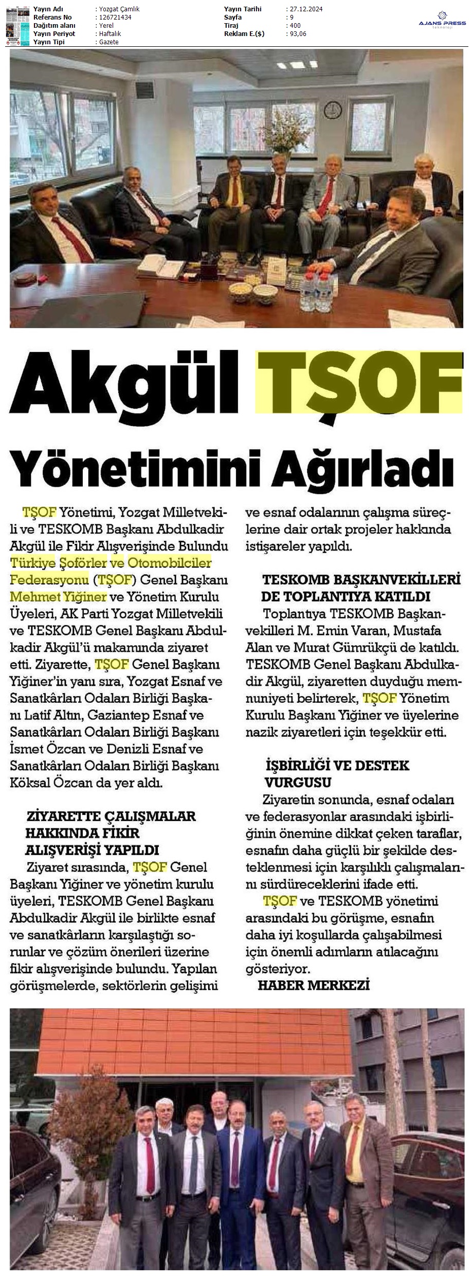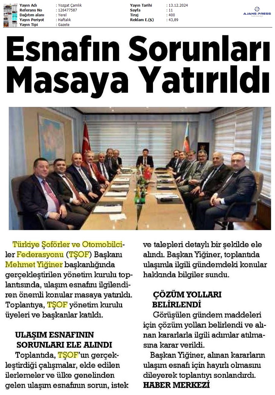 Türkiye Şoförler ve Otomobilciler Federasyonu Yönetim ve Denetim Kurulu toplantımızı, kurul üyesi başkanlarımızın katılımlarıyla federasyonumuzda icra ettik.