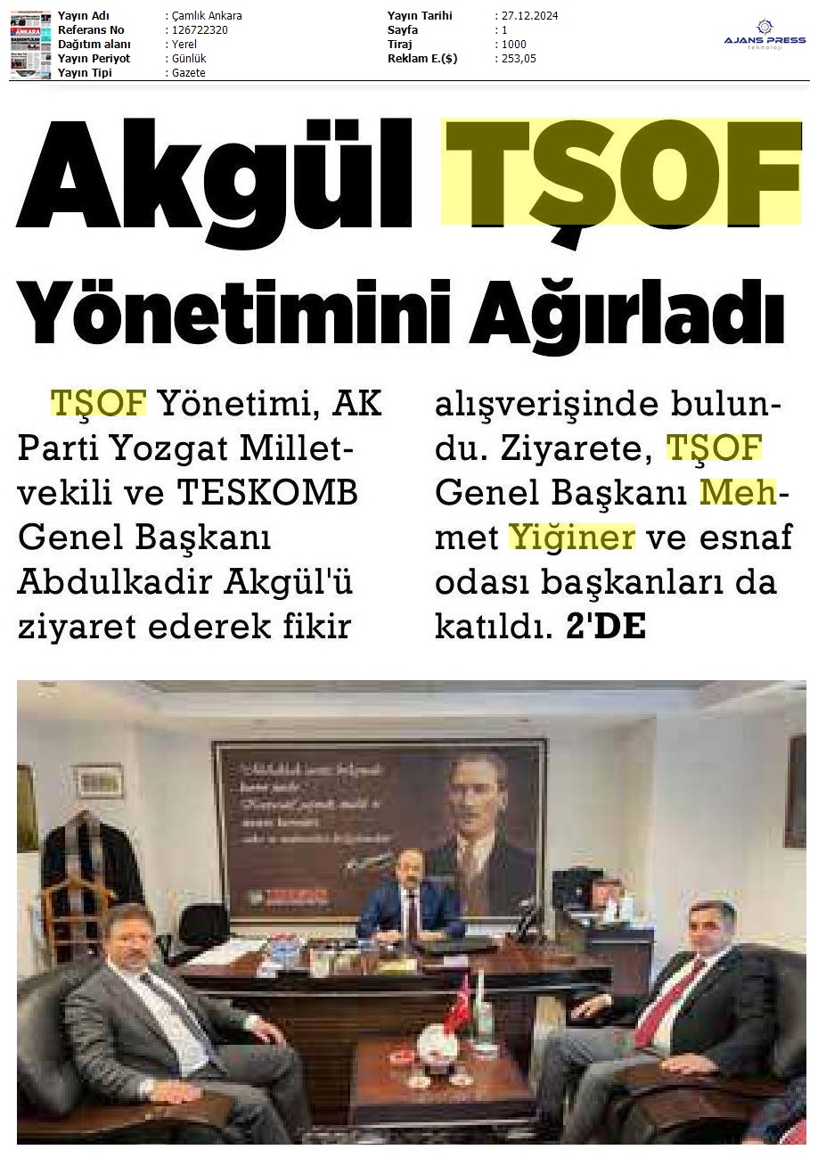 Genel Başkanımız Sayın Mehmet Yiğiner; İçişleri Bakanlığı Genel Sekreterimiz Sayın Balamir Gündoğdu’yu; ANKESOB Başkanımız Hüseyin Ar ve TŞOF Yönetim Kurulu Üyemiz Ercan Soydaş ile birlikte ziyaret etti.